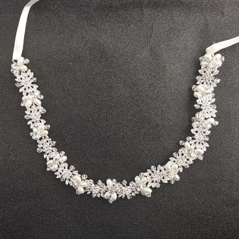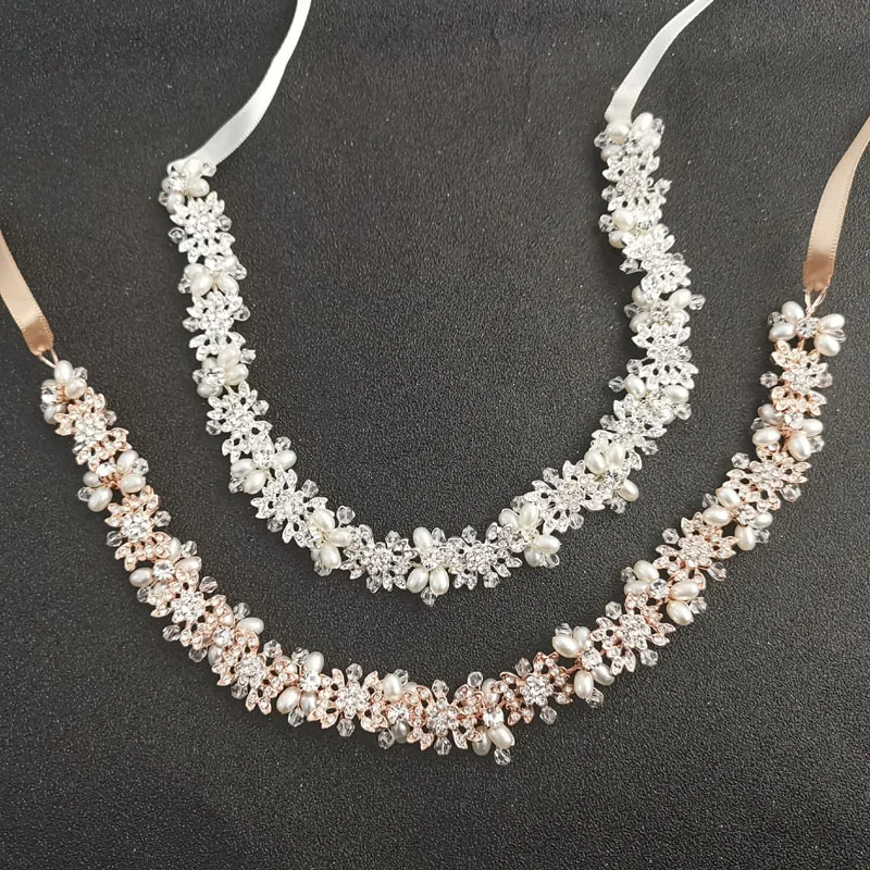 SLBRIDAL Clear Silver Rose Gold Crystal Rhinestones Wedding Hair accessories Headdress Bridal Headb