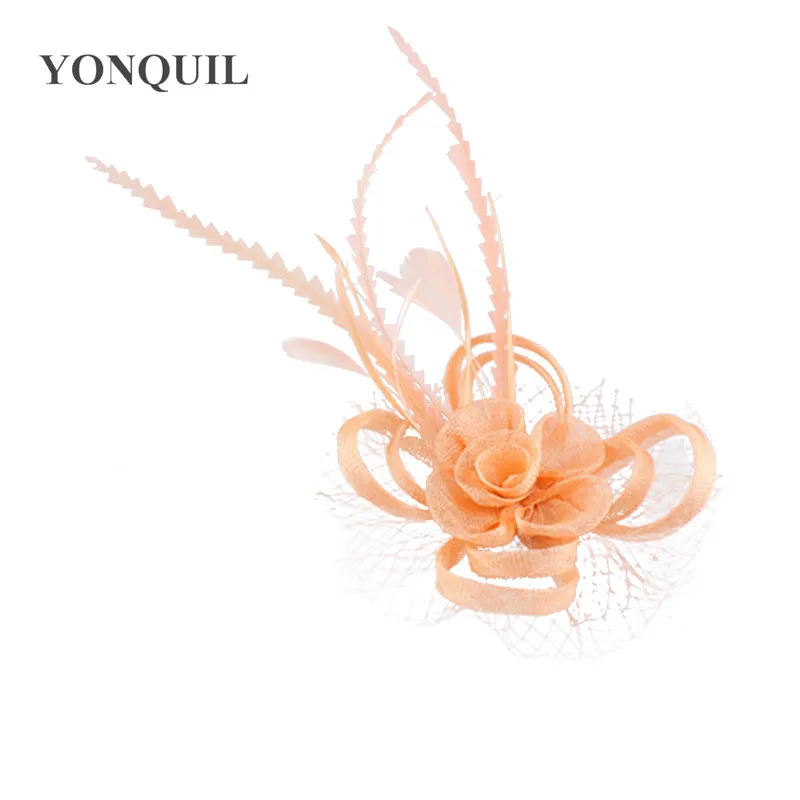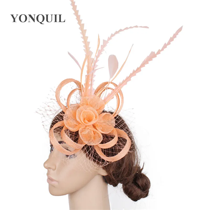 HIGH QUALITY elegant ladies champagne hair fascinators hat on hair comb ladies fancy feather hair accessories we
